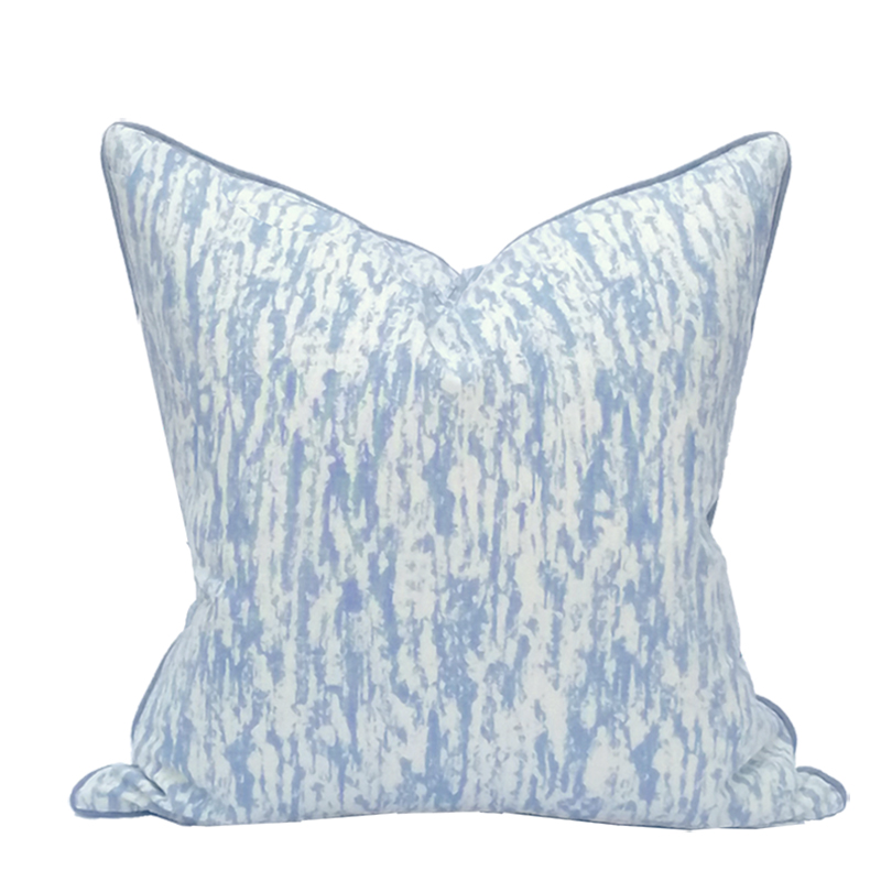 Nantucket Collection’s new modish Quartzite Pillow features an all over marble pattern of sky blue on ivory cotton. Wonderful addition to any room with its tranquil tonal pattern!