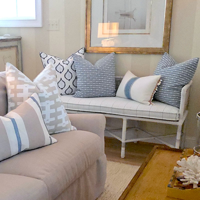 Beachy Casual Vibes!! Companion DeJavu Pillow is wonderful for not only layering with a huge variety of patterns, but also adds visual interest with its woven slub knot texture.